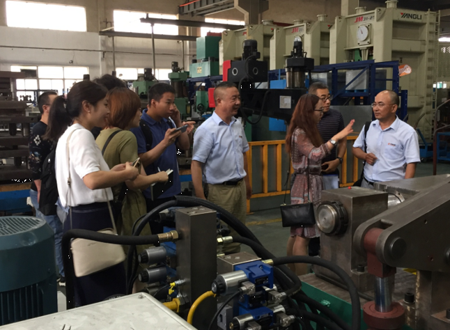 首先在營銷部銷售總監(jiān)江總、采購部呂永剛部長及總裁辦趙錦翔主任等人的帶領下,國家知識產權局一行參觀了我司產品展示區(qū)及生產車間,觀看產品的生產工藝流程。重點觀看調研我司自主研發(fā)的內撐式滾圈機、鋼圈自動焊接裝置及鋼圈聯(lián)軸滾圈機的機械機構和生產過程。深入了解了我司的產品特點和生產工藝工序,提出了很多寶貴的意見和見解。